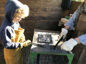 Die Farmkinder sind eingeladen mit eigenen Ideen zum Bauen und Werken in die Kinderwerkstatt zu kommen. Gemeinsam sägen, bohren, raspeln, schrauben und nageln sie, um ihre Ideen zum Leben zu erwecken. Sie können auch traditionelle Handwerkstechniken und Werkzeuge nutzen, wie ein Schnitzpferd mit Ziehmessern für Holzarbeiten oder Hammer und Ambos am Schmiedefeuer. Manchmal übernehmen die Werkstatt-Expert*innen auch Reparaturaufgaben für die Farm oder helfen, die Farm schöner zu machen.